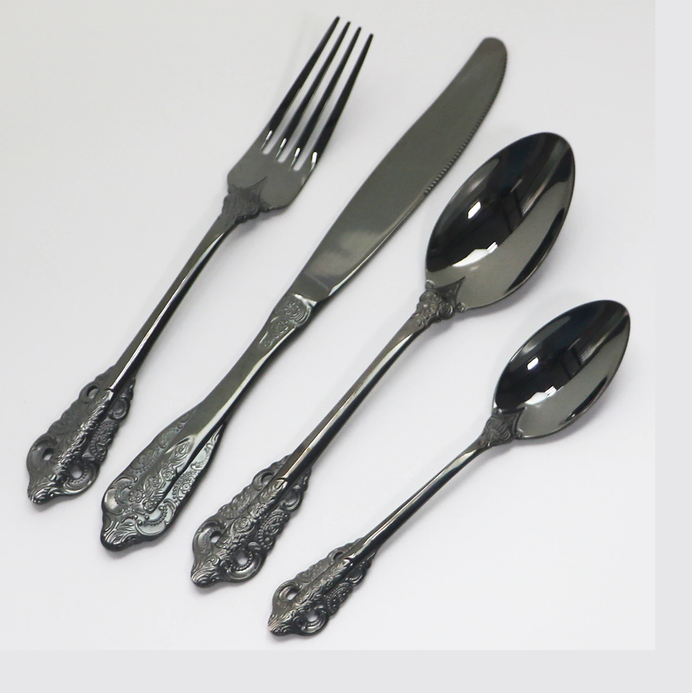Juego de cubiertos de acero inoxidable para 6 personas negro